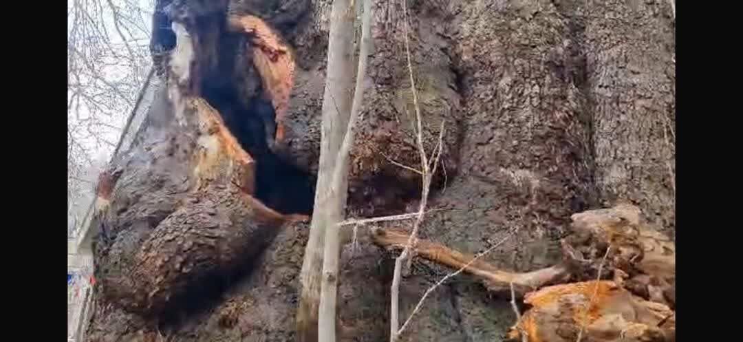 فلاح زاده گفت : آتش از داخل تنه درخت شروع شد اما نمای بیرونی آن سالم است .