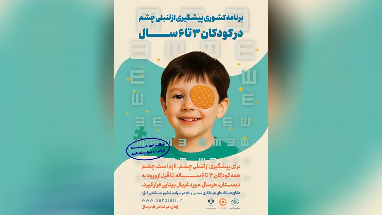 وجیهه محمدی فلاح، مدیرکل بهزیستی استان البرز: بهترین زمان درمان تنبلی چشم قبل از ۶ سالگی است مدیرکل بهزیستی استان البرز از اجرای گسترده برنامه غربالگری بینایی کودکان در استان خبر داد و گفت: تنها در شش ماهه اول سال جاری، ۳۰ هزار کودک ۳ تا ۶ سال تحت غربالگری قرار گرفته‌اند.