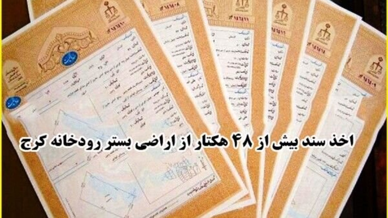 سند ۴۸ هکتار از زمینهای بستر رودخانه کرج به نام دولت صادر شد