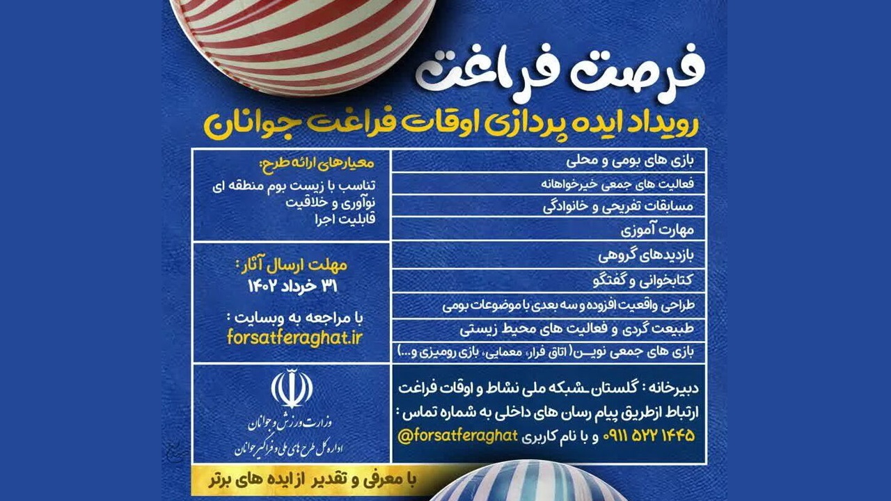به گفته وی، در این جشنواره همه اشخاص حقیقی و حقوقی از طریق ایدهپردازی امکان مشارکت دارند. بنابراین مهلت ارسال آثار تا ۳۱ خرداد ماه است و علاقهمندان میتوانند آثار خود را به نشانی وبسایت forsatferaghat.ir ارسال کنند و در نهایت ایدههای برتر معرفی و تقدیر خواهند شد.