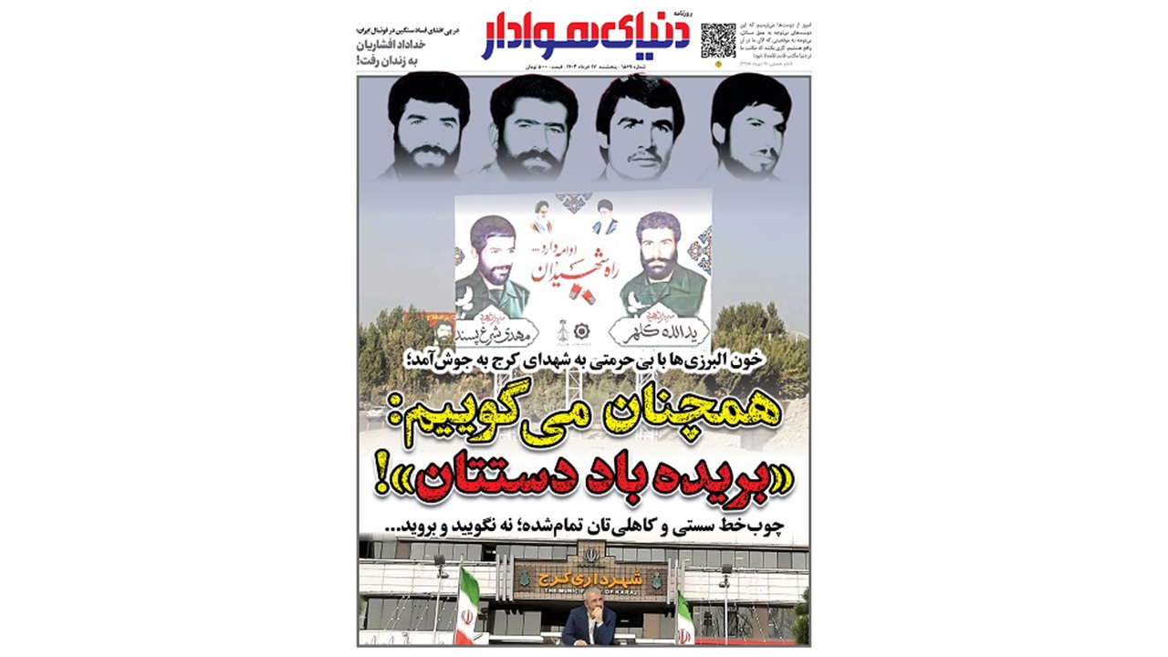 در شمارۀ ۱۵۶۵ «دنیای هوادار» که پنجشنبۀ گذشته -دهمِ خردادماه- منتشر شد، طی یادداشتی نصب تصویر «شهدای خدمت» بر روی تصاویر فرزندان شهید البرز، همانها که نماد سرافرازی استان هستند را مورد انتقاد قرار دادیم. اینکه شهدا با یکدیگر چه فرقی دارند که تصویر شهدای خدمت روی تصاویر شهیدان نژادفلاح و دو شهید گرانقدر دیگر، «یدالله کلهر» و «مهدی شرعپسند» قرار میگیرد؟